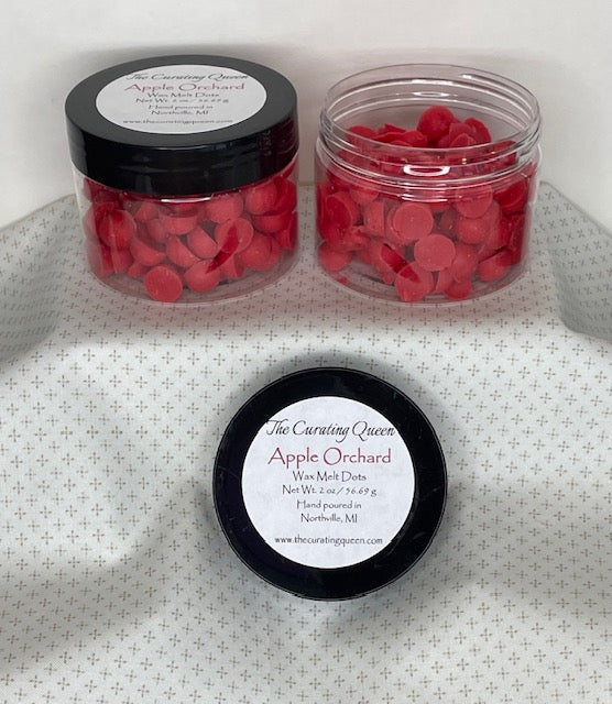 When we say these smell like Apples, we mean it! The notes of these Apple Orchard wax melts are: Apples. You can smell the crispness of the apple peel and the sharpness of the apples, all the while trying to figure out if you can smell Macintosh, Red Delicious, Fuji or Granny Smiths. Each 2 oz jar is filled with individual dots so you can control how much or how little you want to melt.